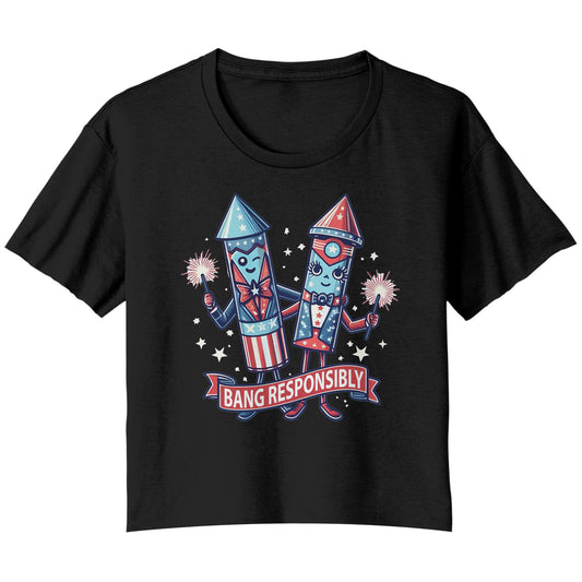 Bang Responsibly - 4th of July Ladies Flowy Crop T-Shirt