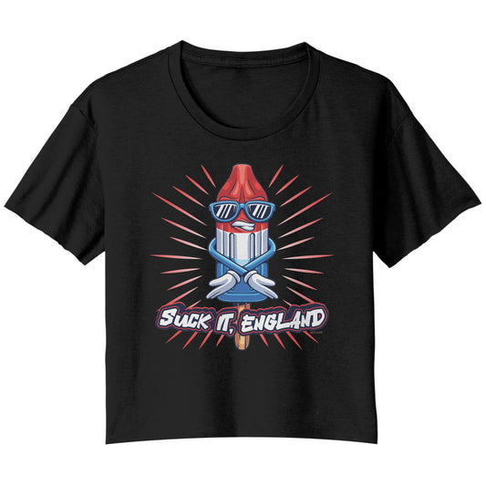 Suck It, England! Funny 4th of July Ladies Flowy Crop T-Shirt